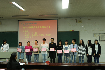 最后,大会进行了第十六届团委员工会的受聘仪式。新任的各部部长上台受聘并合影留念。之后,大会在组织部点到后于当晚9:30圆满结束。