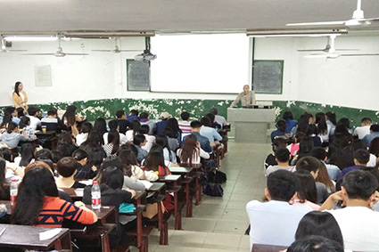 接着是兴湘公司副经理唐春发言,他曾任文新院的党委副书记,对此他玩笑道:“我也算与12级同学一起从文新院毕业了。”唐经理讲,“四年说长也长,说短也短,作为304am永利的毕业生,大家经历过湘大史上规模最大的宿舍搬迁,湘大也将成为毕业生身上抹不去的烙印”。除此之外,唐经理还希望毕业生们抓住工作的关键时期,不要被社会上老员工就业难的现象所吓倒。他特别强调了责任心问题,要学会对自己负责。还要养成良好的习惯,在外表现优秀也能给学弟学妹们创造更多的机会。最后,唐经理还指出聚餐喝酒要有度,远离传销,并且及时跟班级联络员保持联系,配合公司工作。离开公司也要关注公司建设,他希望大都能生活幸福,工作进步。