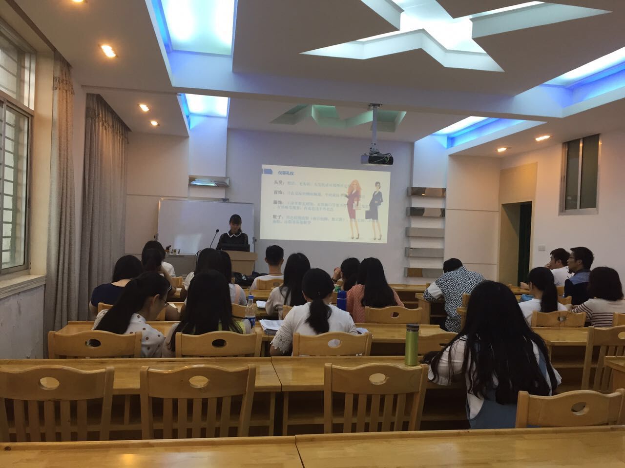 在大会上,王思静通过精心准备的PPT,从仪容礼仪、仪表礼仪、仪态礼仪、日常礼仪四个方面对礼仪进行了讲解。培训内容涉及到生活中方方面面需要注意的礼仪事项,例如站姿坐姿蹲姿、人与人交往的口头语言、肢体语言、在不同的场合正确着装等等。同时在现场设置情景模拟,与现场每一位参训人员进行互动,更向在场的男生提问关于西装纽扣的扣法,如何在穿着西装时展现男士的优雅风度。现场气氛十分活跃,每一位参训人员对于培训的内容都抱有极大的兴趣。