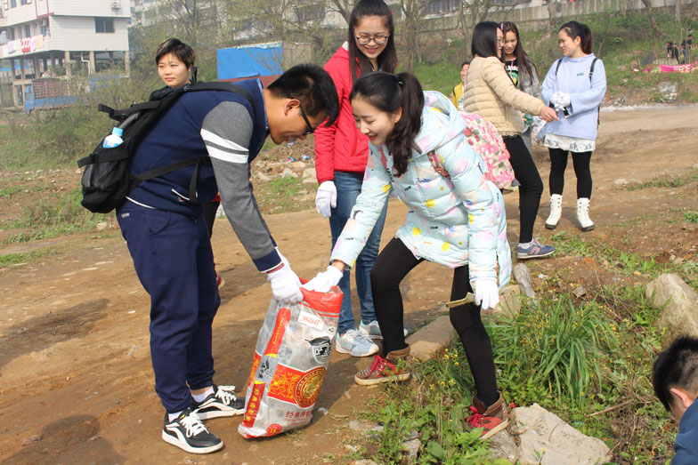 当日上午八点,志愿者们在湘大东门集合,一同乘车前往位于湘江沿岸的喇叭街。他们一到地点便分配好任务,在分发好手套和垃圾袋以后,便行动起来。众人环顾四周捡起被随地丢弃的垃圾,将它们一个个都放置到垃圾袋中。用不了多久,一个垃圾袋就装满了。