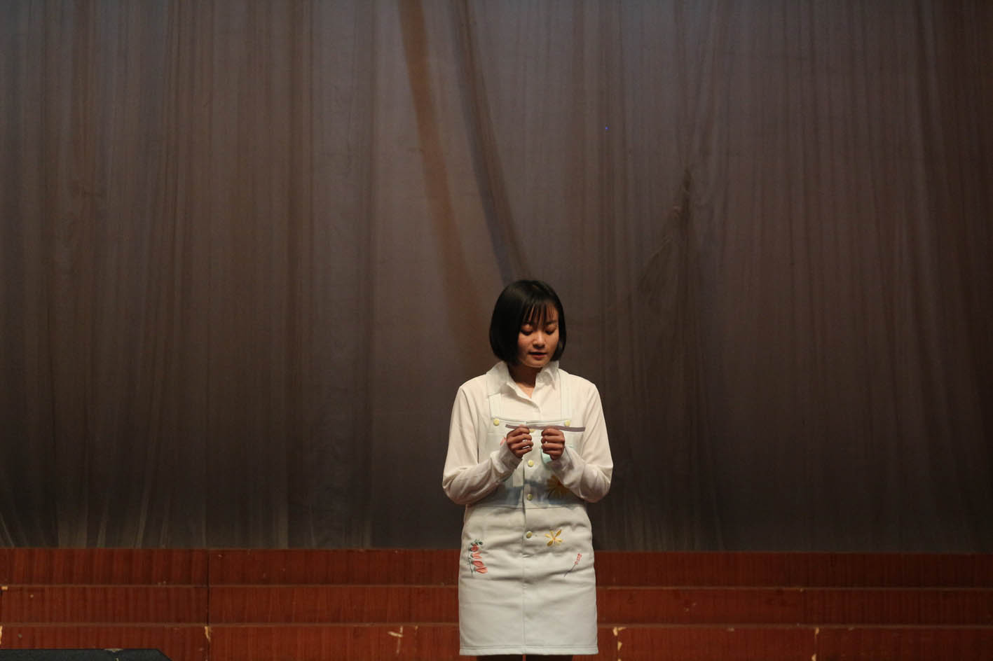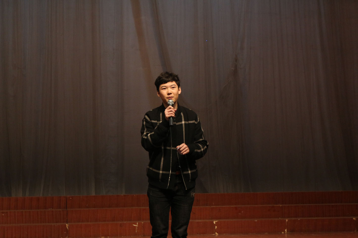 参赛选手早早地在报告厅等候,他们来自各个院系,有文公司、数公司、化公司、历史院等。通过选手们的表现,我们也发现以往认为“主持只是文科生的专长”的想法存在着偏见,不少理科生也是伶牙俐齿、思维敏捷。评委团由四人组成:范靖、张弘靖、屠成佳、陈贺,他们都是大三的学长学姐,主持过校内的各类晚会活动,具有相当丰富的经验。