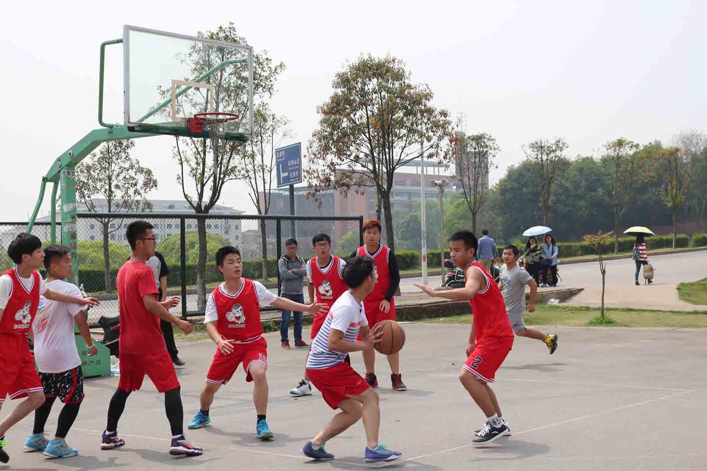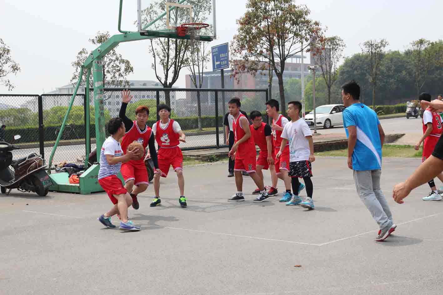 4月1日中午12:30,男子篮球小组赛在东门篮球场激烈开打。天气闷热,但场上十分气氛活跃。