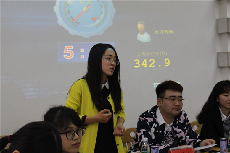上午九点,比赛正式开始。第一场比赛由BILIBILI大法好担任正方,湖黑东东呛队为反方。他们的辩题是“朋友圈应不应该屏蔽导师?”正方的成员分别是一辩刘桑、二辩彭森、三辩齐琪;反方湖黑东东呛队的成员分别是一辩何丽芬、二辩王琳、三辩朱选民。