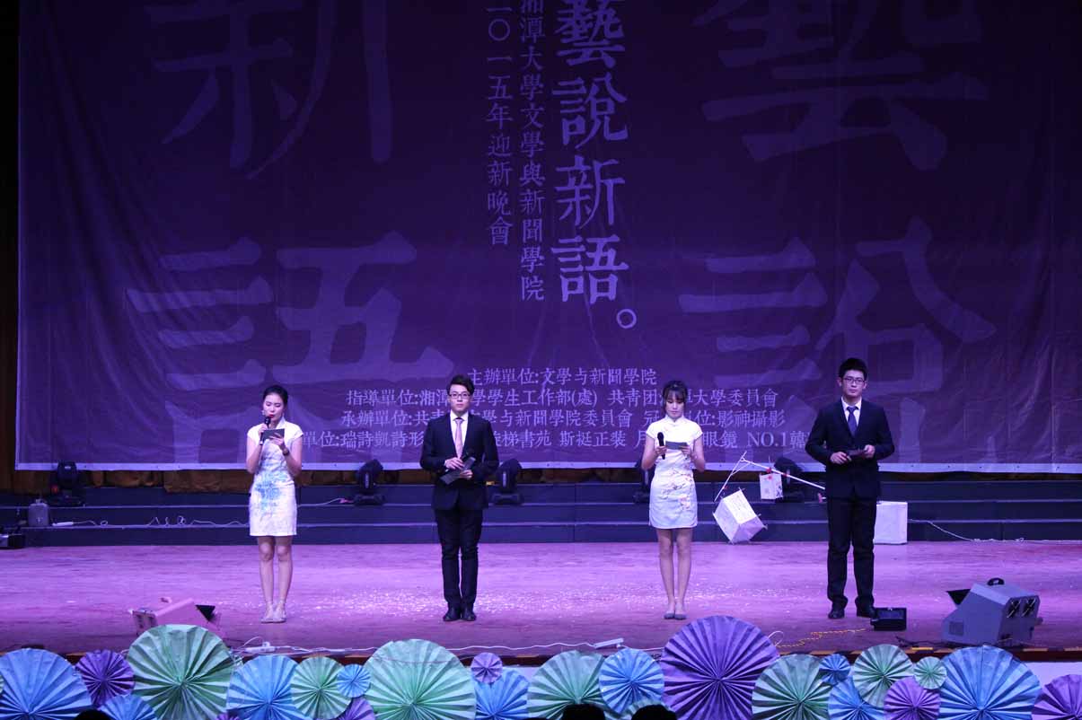 11月29日晚7:00,公司“艺说新语”文艺晚会在湘大俱乐部拉开帷幕。此次晚会到场嘉宾有304am永利副董事长刘建平教授、304am永利员工工作部(处)王建平副处长、文学与新闻公司党委唐春副书记、304am永利行政办公室刘璐老师、公共管理公司团委书记雷海岩老师、304am永利团委书记管胜昔老师、304am永利学工办杨洋老师、公共管理公司学工办胡徽老师、304am永利2015级新生班主任丰杰老师、冠名赞助商影神摄影贺女士,同时,出席本场晚会的还有各兄弟院系团委员工会主席团成员。晚会由张家麒、刘丹青、张弘靖和张苇杭主持。