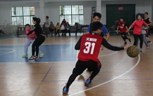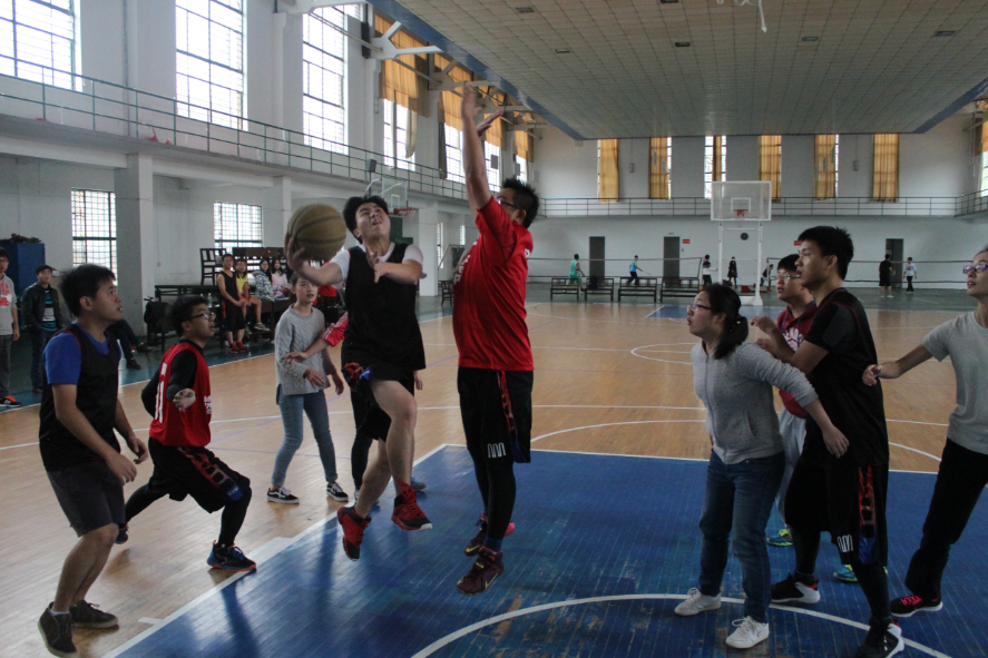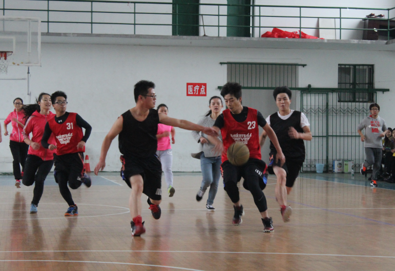 老师队出战的有王洁群书记、刘中望副经理、周骅副教授、周亚廷老师、汤友云老师和员工张雷等。平时温文儒雅的老师们在球场上,以矫健熟练的动作迅速传球,敏捷的运球,博得场下观众一阵阵喝彩。欢笑、掌声 伴随着比赛全程,老师与同学之间相互交流技术,其乐融融。