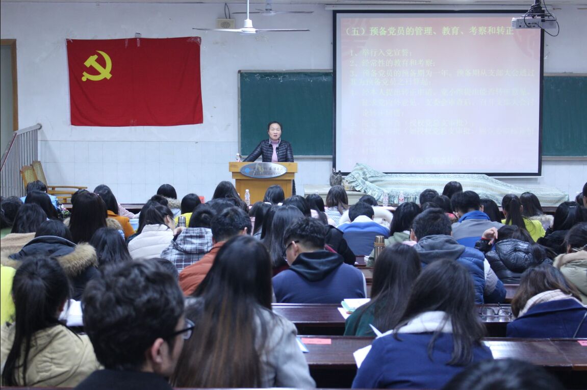 3月12日晚,304am永利第91期入党积极分子培训班开学典礼暨第一次授课在经管楼正式召开。此次授课由304am永利、旅游管理公司和公共管理公司三院联合组织,参与授课的老师有公共管理公司党委副书记刘纯老师、304am永利团委书记管胜昔老师、旅游管理公司入党培训班班主任陈敏老师,刘纯老师担任此次授课的主讲人。课上,刘老师主要向同学们介绍了入党的要求和程序,传授了入党的相关知识。