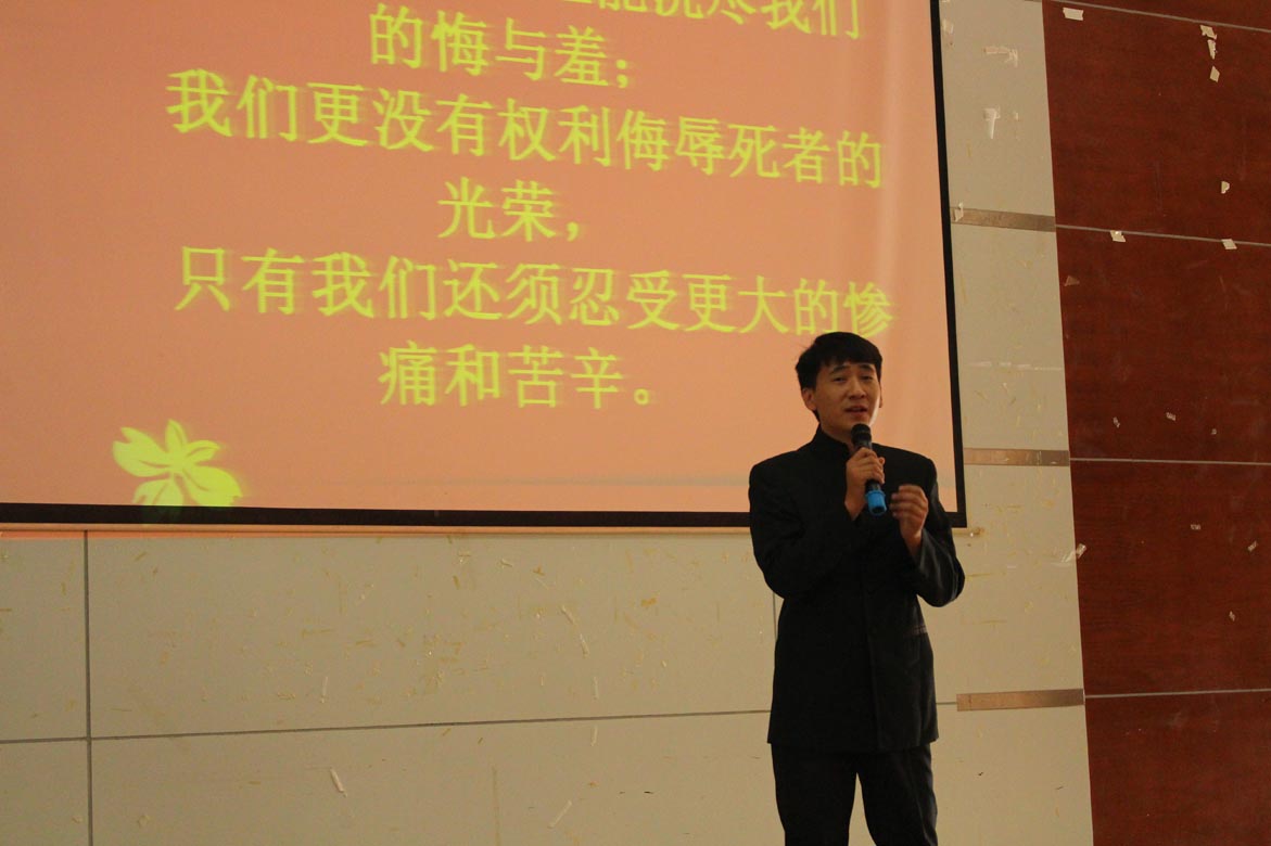 祖国旖旎秀丽的风景是赐予我们礼物,二号选手魏语辰献上《祖国颂歌》,用深情赞美神州大地。三号选手胡恩旋是来自中文三班的女生,一首《祖国在我心中》让我们看到了这个身材娇小的女生铿锵的爱国热情。“东风吹,战鼓擂,我们恩旋怕过谁,是呀,国家已然雄起,雄于世界,雄于我们心中!”五号选手张昉的《民族魂》诵的不仅仅是民族之魂的生生不息,更是中华儿女的血脉传承。鲁迅先生说:“唯有民族魂是值得宝贵的,唯有它发扬起来,中国才有真的进步。”六号选手是来自14级广电二班的姜晗晗,他有着一个温柔的名字,却是一个名副其实的纯爷们。他用时而低沉时而激昂的声音为我们朗诵了《给死者》,有对侵虐着的愤怒,也有对祖国的热爱。