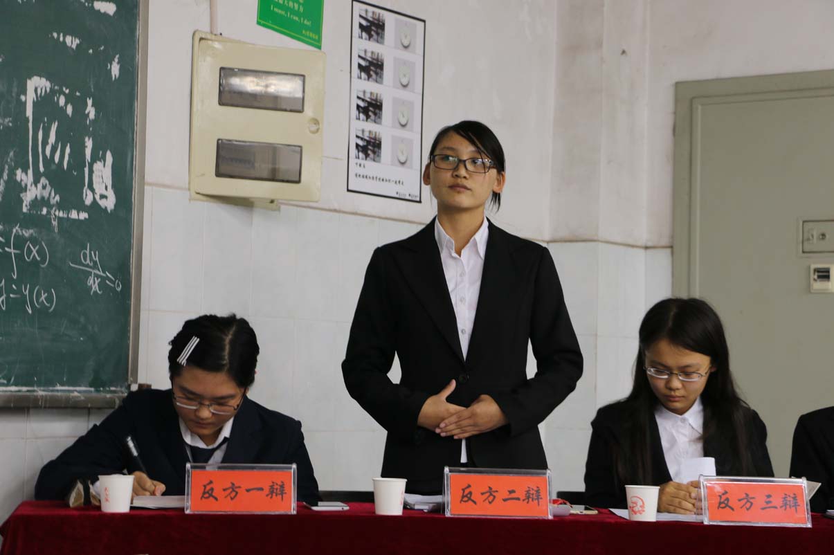 双方辩论临近结束,总结陈词环节是对之前环节所述观点的补充和综述。总结完毕,评委代表发言。她先赞美了双方辩手陈述得当,条理清晰,也指出了个中不足。几分钟后,主持人宣布比赛结果已出,15中文一班的戴炜烨获优秀辩手称号,15中文二班获得辩论胜利。