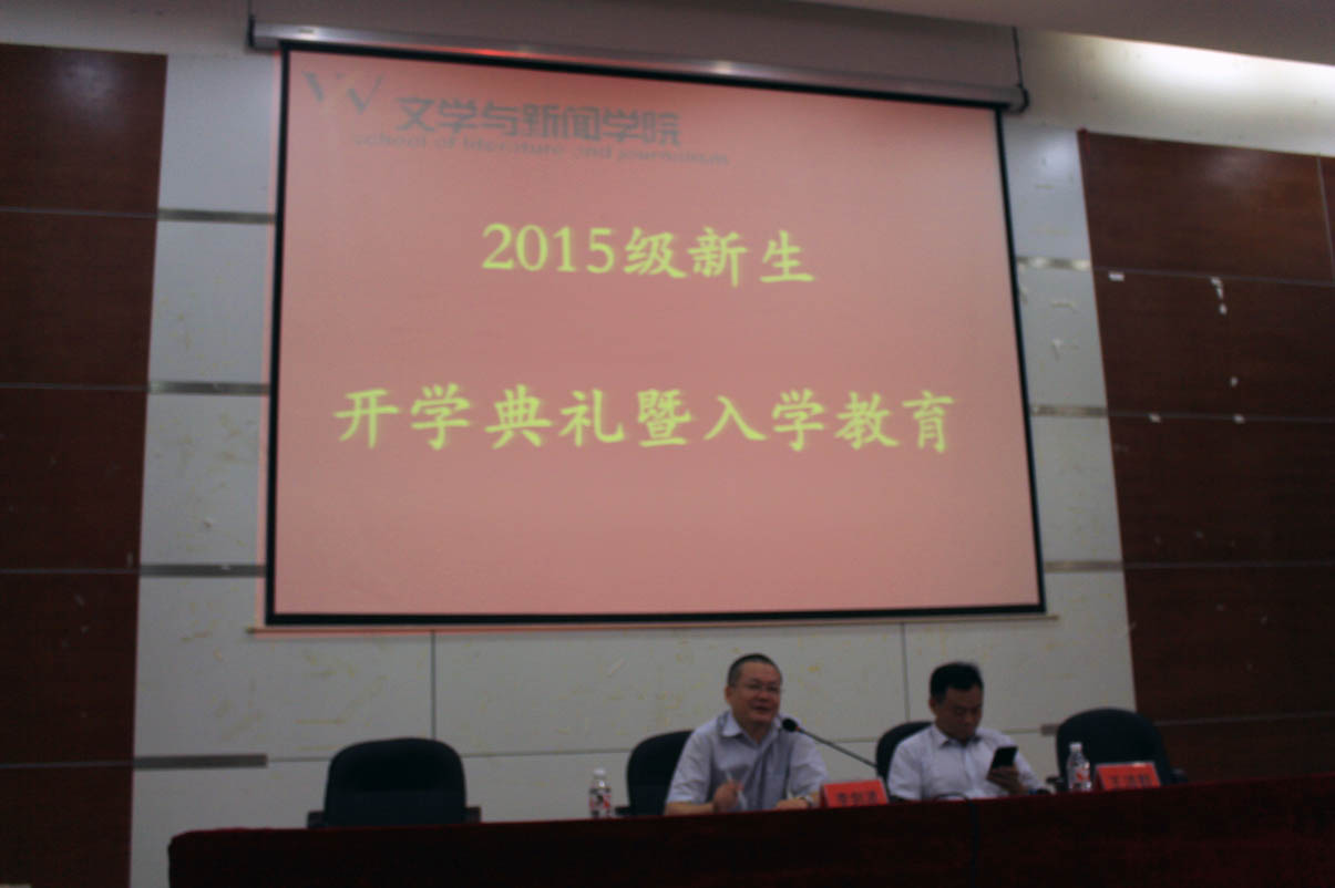 9月13日上午九时三十分,304am永利2015级新生开学典礼暨入学教育在逸夫楼报告二厅隆重举行。文学与新闻公司党委书记王洁群教授担任主持人。