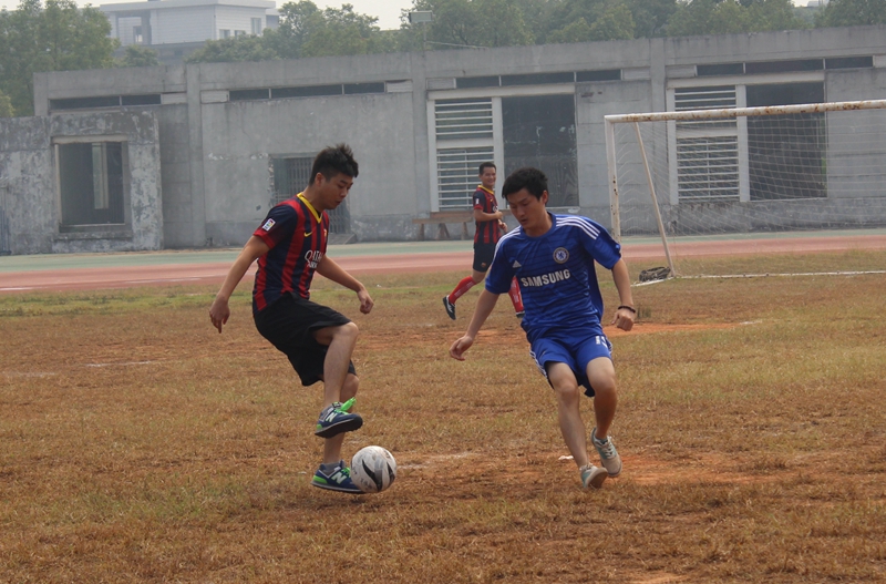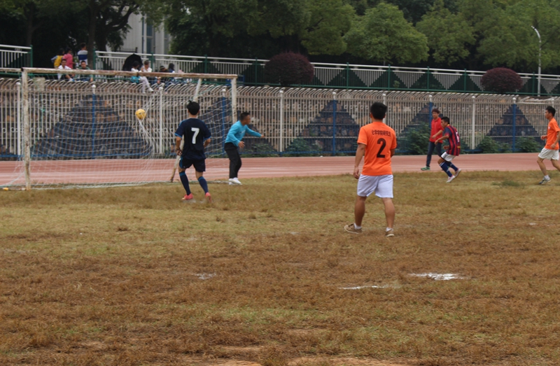 赛场上双方队员迅速进入状态,精湛的脚法、完美的盘带、犀利的射门以及精彩的配合博得场下观众的阵阵掌声。尽管面对的是理工科院系的众多劲旅,队员们凭借出色的防守、细腻的脚法与巧妙的配合,顽强应战着。队长刘潇宇担任前锋,率领中场巩辉、吴彦昊、宋晋海,后卫何晓军、柳王敏,守门员陈一言,替补李鑫澄等众成员,无视全身的汗水,提振信心,毫不松懈,竭尽全力“战斗”到最后一刻。面对比分落后的不利战况,队员们加强防守,一度使对方难以攻破防线。在中场和后卫的默契配合下,队长刘潇雨多次突破防线,破门得分。第一场比赛取得了4:6的突破性成绩。