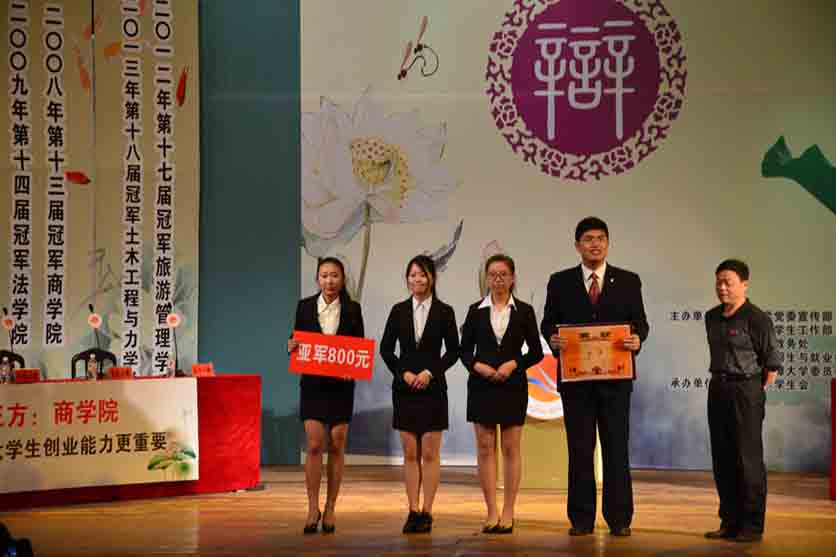 接下来进入颁奖环节。分别为20个优秀辩手,最佳辩手郑琦,十佳辩手、最受欢迎辩手廖轩威以及十个优秀组织颁奖。最后主持人宣布荣获304am永利第二十届“百灵鸟”杯辩论赛总决赛季军的是历史系、公共管理公司,获得亚军的是304am永利、获得冠军的是商公司。