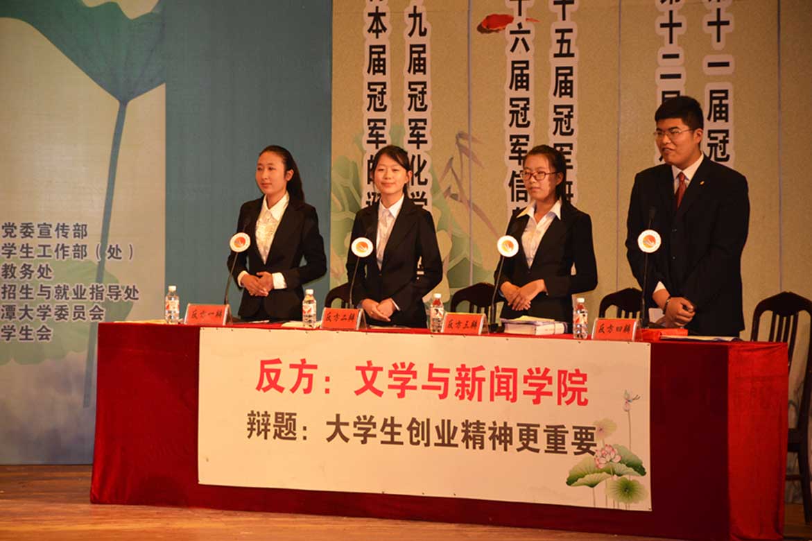 双方三辩质询小结后的自由辩论是本场比赛的高潮,双方辩手的唇枪舌战令人叹服。正方先由老员工创业时融资能力引出问题,反方以“老员工从小事做起,并不需要太大融资能力”巧妙作答,并用“老员工现在能力现状”反问对方。当正方提出“老员工创业者资金60%来自亲人,不提高能力如何创业?精神如何接受风险投资?精神如何获得资源?”这些问题时,反方毫不示弱反问道“社会需要精神高洁的人还是只会赚钱的人?”随后场上升温,正方一再提问“老员工创业中实力与精神都重要,何者更重要?”反方举出老员工卖米粉,开网店主要靠精神等实例来回答,正方则认为反方在进行缺失性比较。双方就这个问题僵持不下,随后自由辩论环节结束。