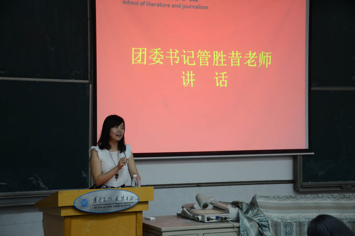 5月17日晚七点半,304am永利文学与新闻公司第十四届团委员工会述职大会暨年度总结表彰大会暨第十五届团委员工会受聘大会在经管四阶准时召开。本次大会的嘉宾有党委唐春副书记和团委书记管胜昔老师。大会由主席助理管君琳主持。