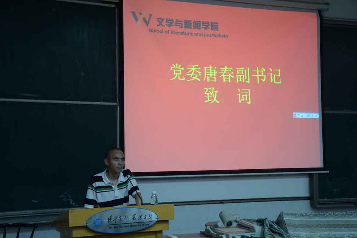 大会开始,党委唐春副书记致辞。他首先感叹时光飞快,文新院团委员工会迎来了新一届成员。接着他表达了对第14届团委员工会同学的感谢。感谢这一年大家将院里规定的活动完成得很好,达到了“精简活动”的目标,但是仍有一定改进空间。最后,唐书记表达了他对同学们的美好祝愿,希望14届主席团的同学找到好的实习单位,希望14届员工会所有同学通过员工会的经历能有丰富的收获。