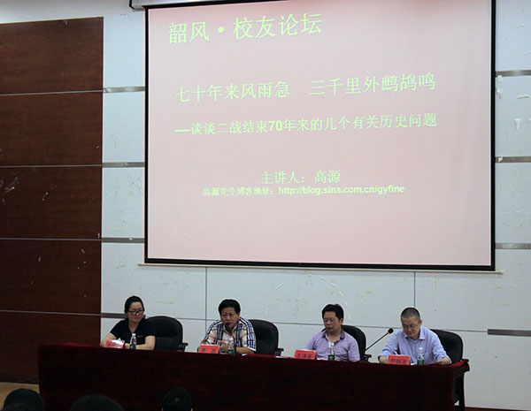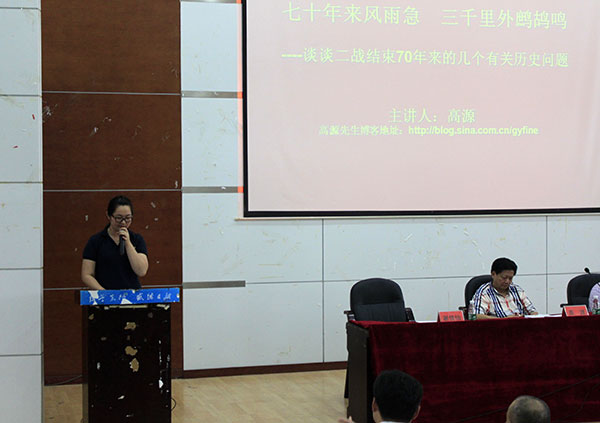 接着,高源先生开始了以“七十年来风雨急 三千里外鹧鸪鸣——谈谈二战结束70年来的几个有关历史问题”为题的讲座。他从俄、美、中、日纪念二战的方式谈起,引出了联合国、世界贸易组织的成立这两个二战的重要成果。接着,高先生就殖民体系瓦解、冷战与意识形态对峙,以及美苏争霸的重要历史事件:封锁柏林危机、朝鲜战争、苏伊士运河冲突、柏林墙、古巴导弹危机、越南战争、苏联侵略阿富汗等等,为我们深刻解析了冷战时期的世界大局,并就与二战历史有密切关系的蒙古问题、台湾问题、中日关系问题与同学们一一进行了探讨,让员工们大开眼界。