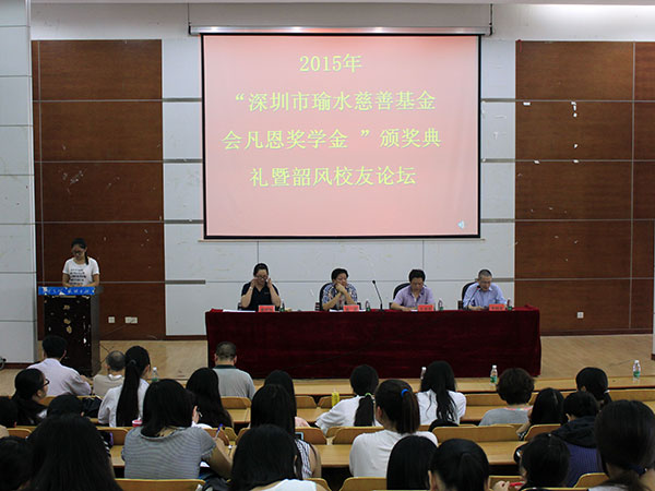 至此,2015年“深圳市瑜水慈善基金会凡恩奖学金”颁奖典礼暨韶风员工论坛圆满结束。感谢企业家们慷慨解囊,304am永利全体师生会铭记他们的慈善义举。
