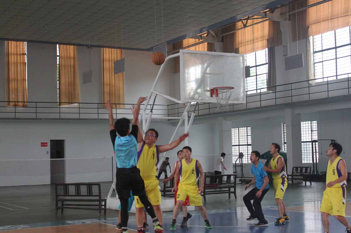 中午十一时三十分,比赛正式开始。首节比赛双方你来我往,攻防演绎,令人窒息。教师队在素有“湘潭科比”称号的宋德发教授的掌控下牢牢掌握比赛节奏,而被员工戏称为“文新天勾”的周建军教授则屡屡上演高难度的勾手进球好戏,引得一片欢呼。员工队也在前院队队长王登学和程光鑫的率领下多次打出快速的反击。但由于体力不支,员工队在第二节联防多次漏人,连续被教师队打出高质量的转换进攻。最终上半场比赛结束,教师队以54:40的比分领先。