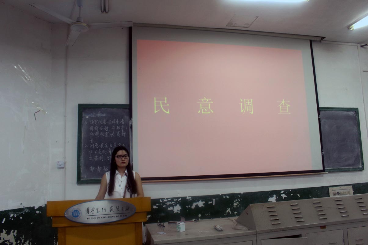 首先,李倩对到场的各位同学表示感谢。并详述大会流程。本次民意调查的问卷有三种,分别是班团干部卷、员工会成员卷、非班团干部、非员工会成员卷,旨在从不同的群体来吸取不同的意见或建议。本次调查问卷问题数量较少,但问题极具针对性与实际性,贴近员工生活,又与员工会各项工作息息相关。到场同学都认真填写,十分钟左右后,同学们填写完毕,并有序将问卷交到工作人员处并离开会场。