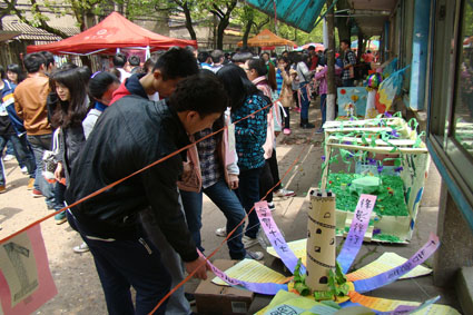 中午十二点,投票正式开始。大一九个参赛班级的参赛作品在北苑宣传栏一侧依次展出,12级各班员工积极踊跃地向过往的同学介绍自己班级的手抄报作品,同时也积极拉票,为班级争取荣誉。北苑摆点处顿时一派热火朝天的热闹景象。一千张人气投票卡在短短五十分钟内投票完毕。本次投票结果将以计分形式计入各班作品决赛最后得分。