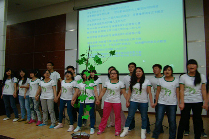 来自广电一班的作品《常青藤》,巧妙的将雷锋精神同常青藤文化相融合。作品以公司泽园长廊为原型,绿意葱茏展现出充满朝气的雷锋精神和积极向上的当代老员工面貌。小节目中,全班合唱《常青藤之歌》,每人手执一枚树叶,共同种植下代表广电一班的常青藤之树;广电二班的作品《锋向标》,取谐音,以雷锋精神作风向标,五个板块分别展现着雷锋精神的传承与老员工的小故事,在小节目中用别有趣味的舞台剧使雷锋精神变得生动、使老员工活变得简单,“在一起”,雷锋精神与我们永远在一起……