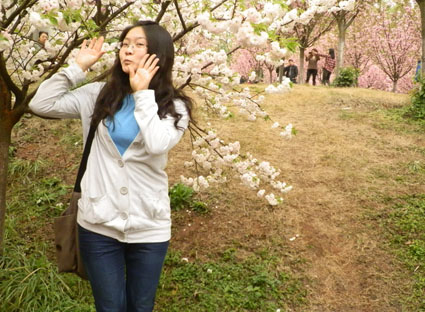 她总喜欢戴一顶圆点蝴蝶结发箍,笑起来有浅浅的酒窝,但生活中甜美的她在舞台却颇有巨星风范。2010年校园十佳歌手过后,一曲《bad romance》一出便艳惊四座。