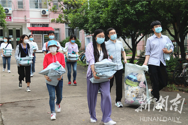 为了提高志愿服务效率,志愿者们参照 “寻物”清单,化身“快递员”,为员工打包电脑、书籍、学习资料和证书证件。志愿者们现场与员工通过电话或视频的方式沟通核对,确保物件寄送“零失误”;搬运时发现快递袋上的字迹有磨损,志愿者们细心填补加粗,保证在邮寄过程中“零差错”;带队老师们躬身力行为每间员工宿舍做好卫生清洁和消毒工作,关好寝室的灯和门窗,确保宿舍安全“零隐患”。