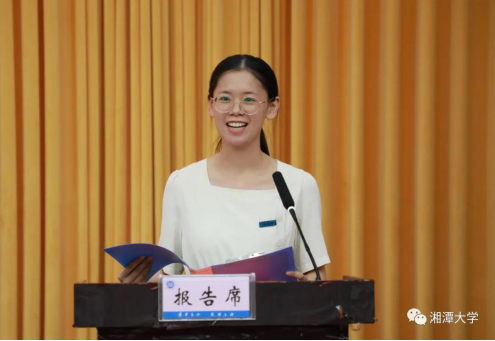 庆祝大会上,公司19级新闻学专业陈习妮作为员工代表发言,回顾了两年来在湘大遇到的好老师,表示将用奋斗和成就回报老师的培养,用热情和智慧续写湘大的辉煌。